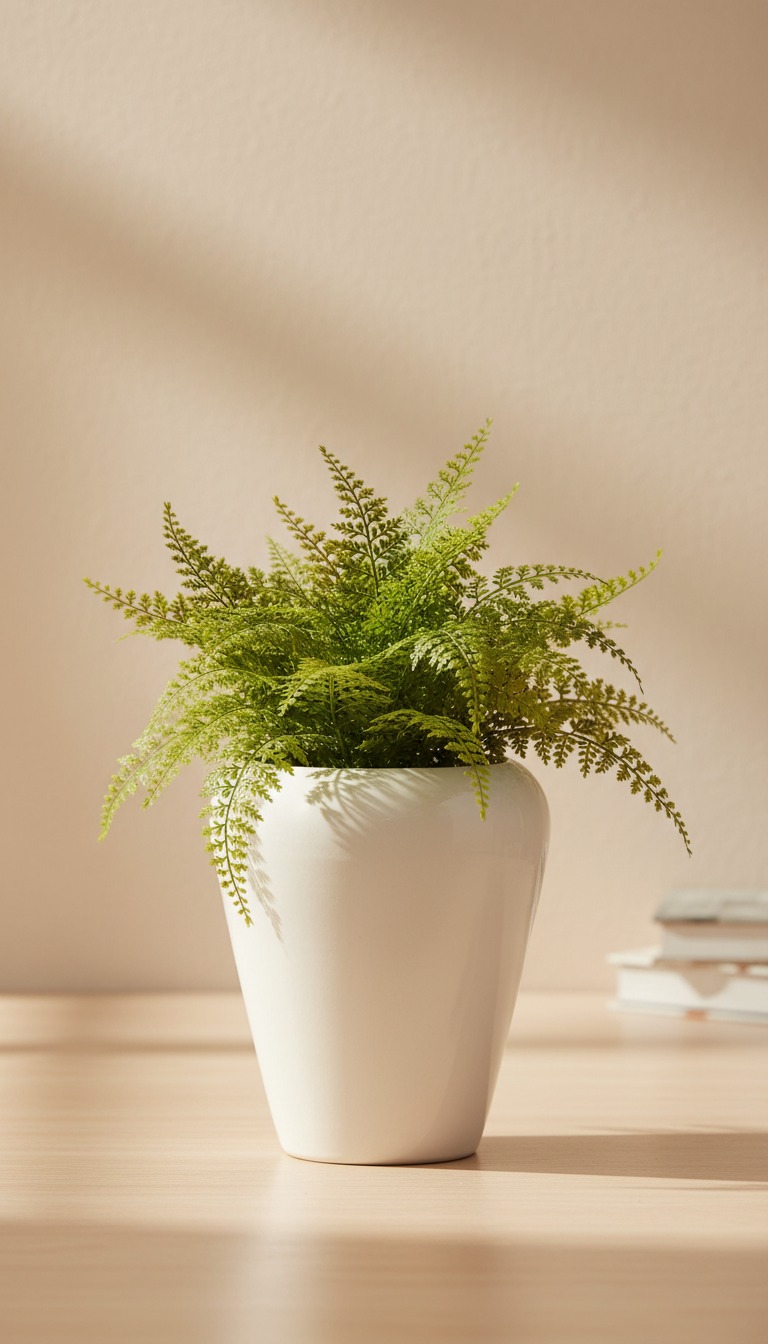 Artificial Fern Plant in White Ceramic Pot Large