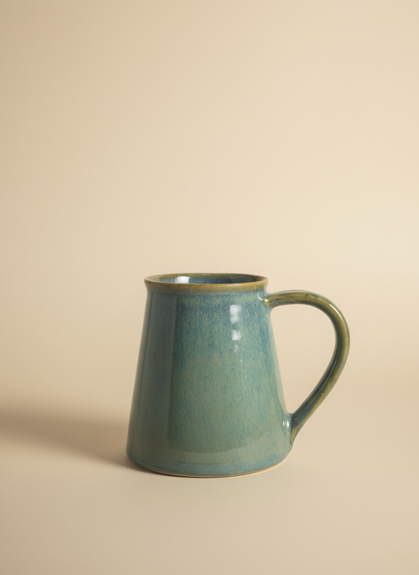 Enjoy your morning chai or coffee in this beautiful blue ceramic mug. Its unique shape and comfortable handle make it a joy to use. A lovely piece from Varaaya.