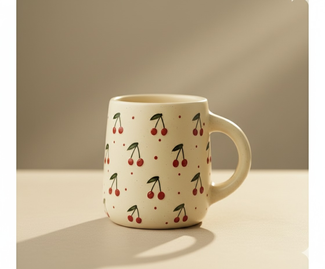 Enjoy your morning chai or coffee in this adorable ceramic mug. Featuring a delightful cherry print, this mug from Varaaya adds a touch of sweetness to your daily routine. It's perfect for home or office use.