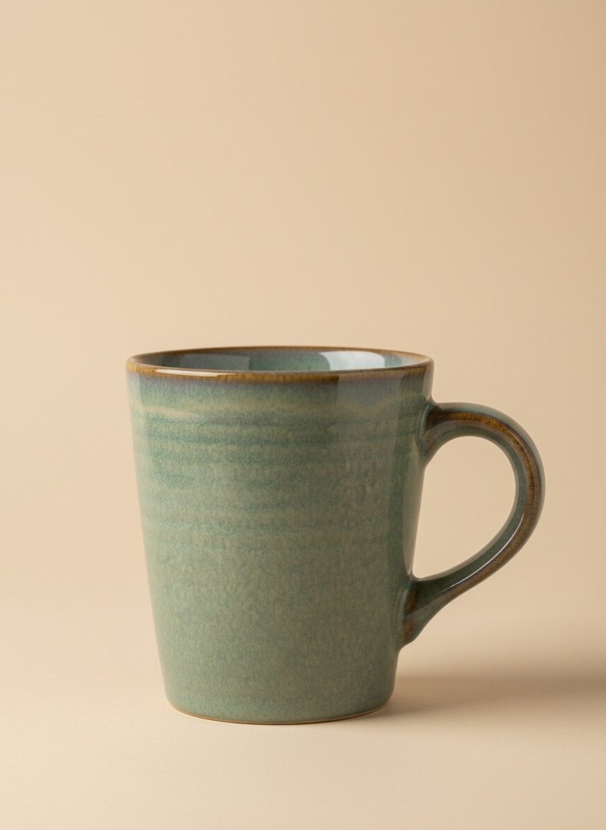 Enjoy your morning tea or coffee in this beautiful green ceramic mug. Its unique design and comfortable handle make it a joy to use. This mug is a great addition to your Varaaya collection.