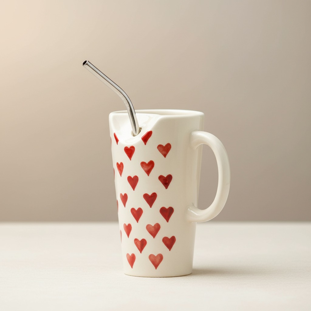Heart Print Ceramic Mug with Straw