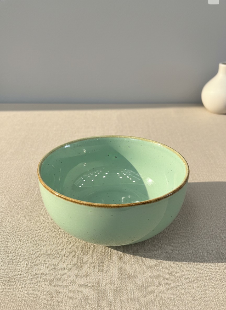 This lovely mint green ceramic bowl is perfect for serving snacks or small dishes. Its simple yet elegant design will complement any table setting. This bowl is brought to you by Varaaya.