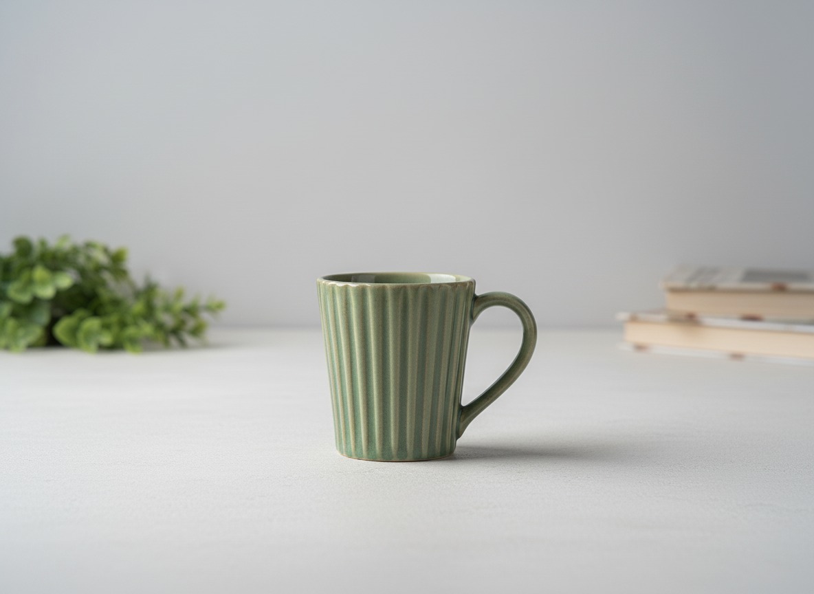 Enjoy your morning chai or coffee in this lovely sage green ceramic mug. The ridged design adds a touch of elegance to your daily routine. This mug is from Varaaya's latest collection and is perfect for any beverage.