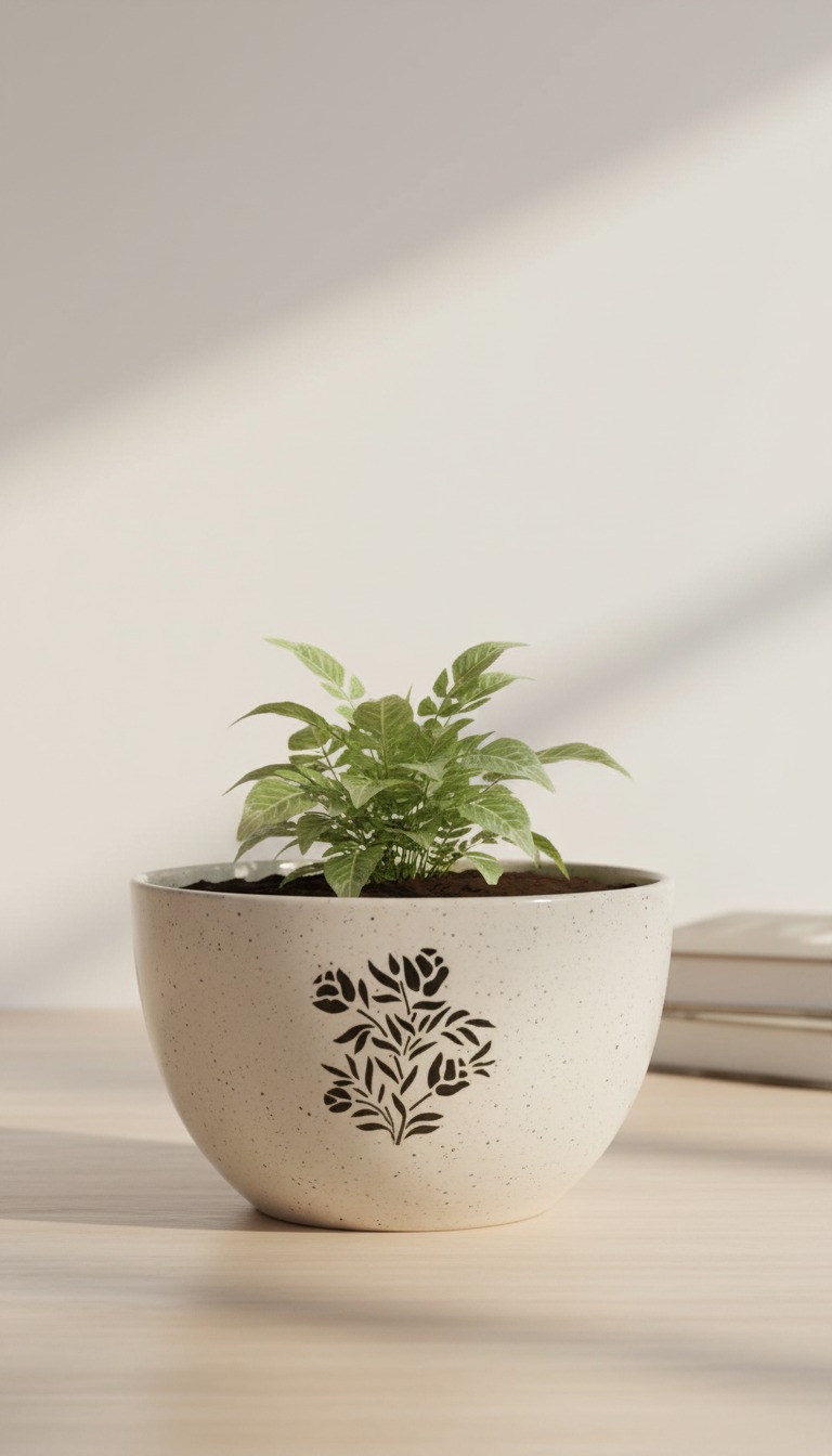 This charming small planter is perfect for adding a touch of nature to your indoor space. The floral design adds a subtle elegance. Consider Varaaya for more home decor options.
