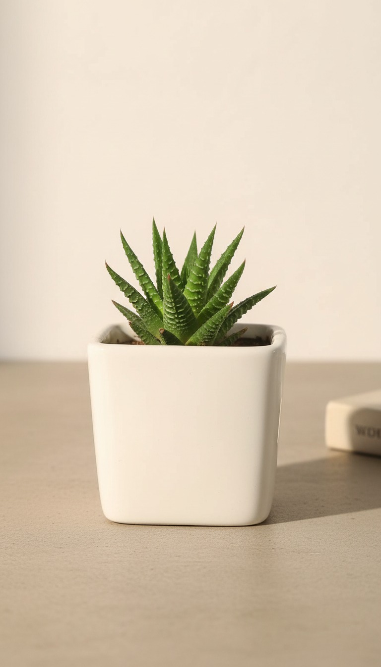 Small Haworthia Plant in White Pot