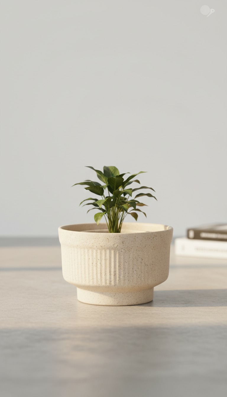Brighten your home with this small indoor plant, nestled in a stylish textured pot. Its neutral tone and simple design make it a versatile addition to any room. This plant pot from Varaaya will add a touch of nature to your home decor.