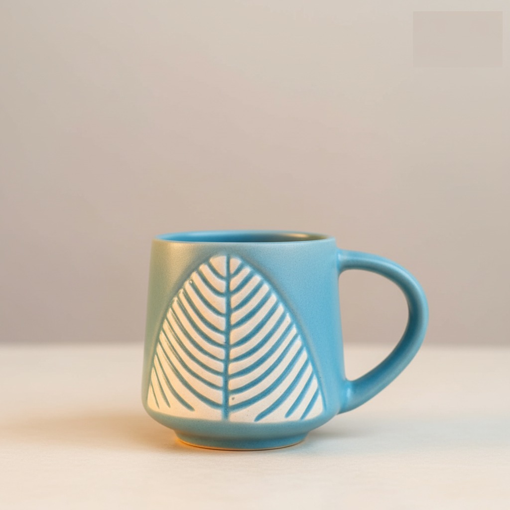 Enjoy your morning chai or coffee in this beautiful blue ceramic mug. The leaf design adds a touch of elegance to your daily routine. This mug is perfect for gifting or for adding to your own collection. Discover more such unique designs from Varaaya.