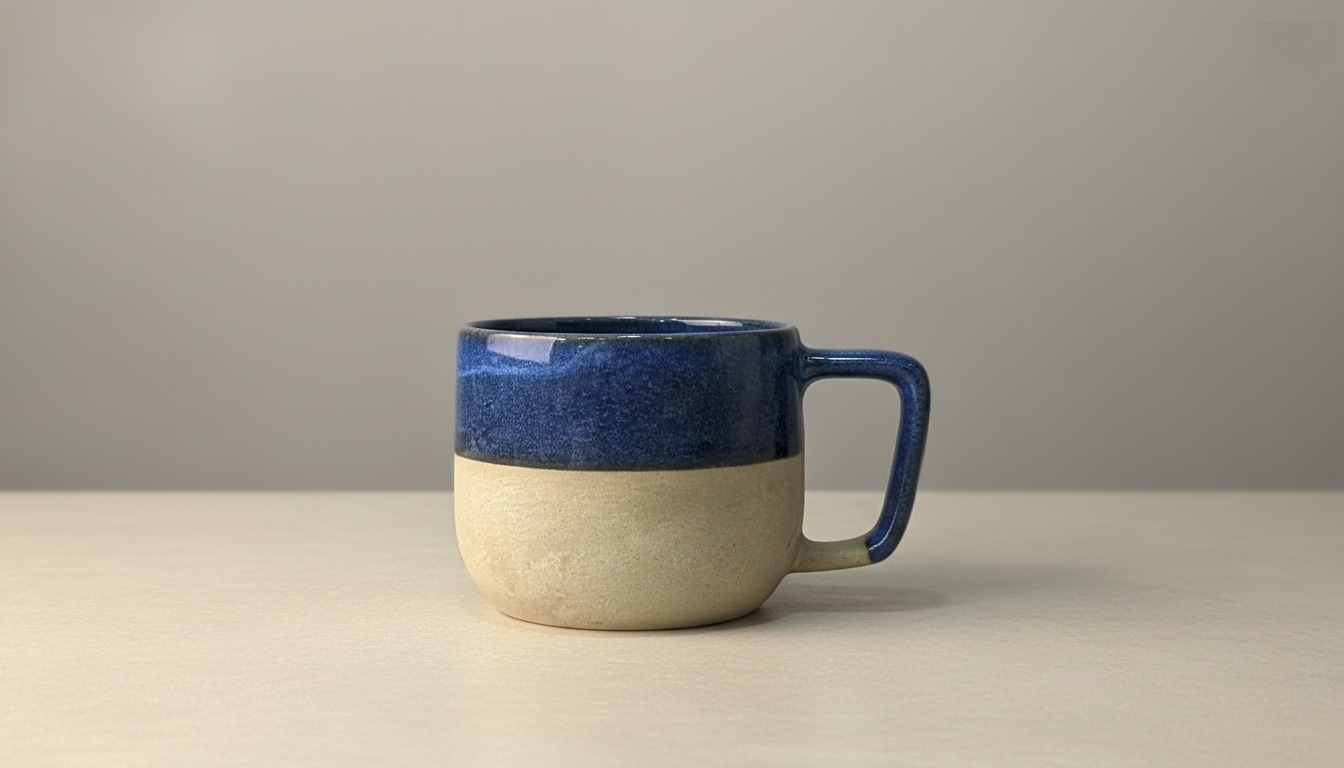 Two-Tone Ceramic Coffee Mug, Blue and Beige