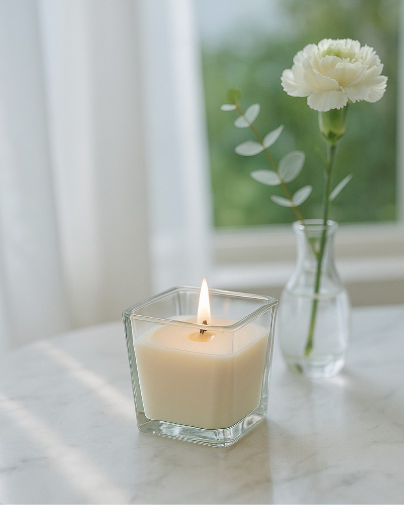Bring effortless calm into your space with the Square Clear Glass Candle Jar. Designed with clean lines and a transparent glass finish, this candle allows the soft glow of the flame to take centre stage. Its minimal, square silhouette adds a touch of modern elegance while blending seamlessly into bright, airy interiors. Perfect for everyday relaxation or subtle décor styling, this candle feels light, fresh, and timeless—ideal for spaces that embrace simplicity and serenity. Key Highlights Clear square glass jar with modern design Soft, warm glow that enhances natural light Minimal aesthetic suitable for contemporary spaces Reusable glass container after candle use Versatile décor piece for daily use or gifting Specifications Material: Clear decorative glass Shape: Square Capacity: ~120 ml Size: ~2.5 inches Wax: Premium candle wax (fragrance customisable) Ideal For Bedrooms, living rooms, and window-side tables Minimal, Scandinavian, and modern décor themes Relaxation, meditation, and quiet moments Thoughtful gifting for housewarmings and special occasions Care & Safety Trim wick to 5–7 mm before lighting Place on a flat, heat-resistant surface Do not burn continuously for more than 2–3 hours Keep away from children, pets, and drafts